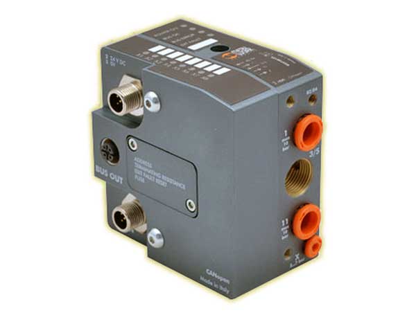 Es gibt zwei verschiedene Eingangsplatten: eine mit 16 Ansteuerungen (16x Out) und eine mit 16 Ansteuerungen und 8 Eingängen (16x Out + 8x In). Die M12-Eingangs-Steckverbinder können jeweils mit zwei Eingängen pro Anschluss belegt werden. Alle bekannten Funktionen der HDM werden auch mit dieser Ausführung gewährleistet. Die Bedieneroberfläche ist auf nur einerSeite, um Montage und Service zu erleichtern. Alle pneumatischen Anschlüsse sind auf einer anderen Seite und die elektrischen Anschlüsse und Wahlschalter ausschließlich an der Stirnseite.