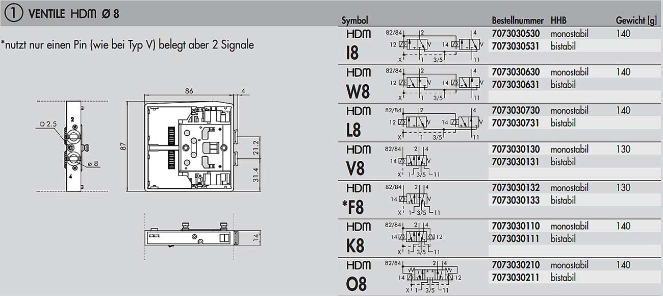Alle HDM-Ventile können in den Ventilinseln gemeinsam mit jeder beliebigen Eingangsplatte kombiniert werden. So kann jedes Ventil mit einer Multipol-, AS-Interface-, Profibus DP- oder CANopen-Eingangsplatte verwendet werden.