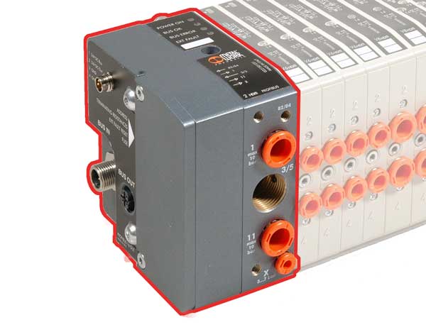 Ventile und Zubehör sind HDM-Standardkomponenten, d.h. dass einfach nur die Eingangsplatte an einer Insel gewechselt werden muss, um diese vom Multipol- zum Profibus-Anschluss zu ändern. Alle Vorteile der HDM können genutzt werden: möglich sind 3 unterschiedliche Ventilgrößen in der gleichen Insel mit Schlauchanschlüssen 4, 6, 8,10 – der Einsatz verschiedener Zwischenplatten mit getrennter Zu- und/oder Abluft; chemisch vernickelte Aluminiumgehäuse in einer glasfaserverstärkten Technopolymer-Hülle mit einer Schutzart IP 65. Der funktionelle Aufbau entspricht den traditionellen und optimierten HDM-Prinzipien: das Anwender-Interface und Bustechnik befinden sich jeweils an verschiedenen Seiten der Insel, so dass alles für den Servicetechniker leicht zu erreichen ist. Alle Druckluftanschlüsse sind an einer anderen Seite als die elektrischen Anbindungen und Wahlschalter.