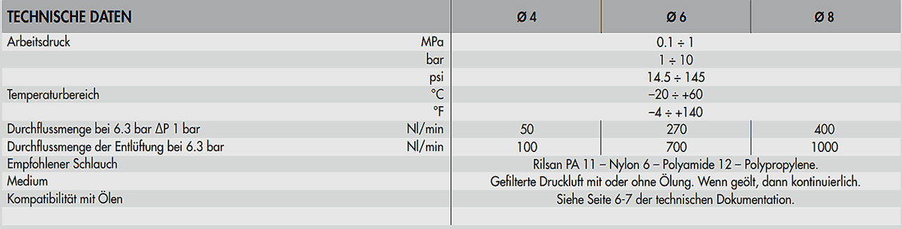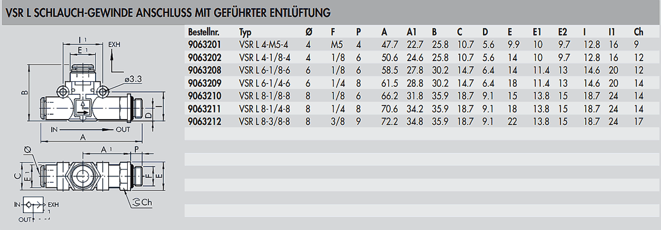 Das VSR L Schnellentlüftungsventil gehört zu der lineonline Familie und kann seriell oder parallel mit allen anderen Produkten verbunden werden. Verfügbar in der Variante Schlauch – Schlauch Verbindung mit zwei Push-In Verschraubungen und in der Gewinde-Schlauch Verbindung mit einem Messing vernickelten Außengewinde und einer Push-In Verschraubung. Die Entlüftung kann durch Verwendung eines rostfreien Stahldrahtschalldämpfers oder durch Verwendung einer (Push-In Verschraubung mit Luftabfuhr gedämpft werden).